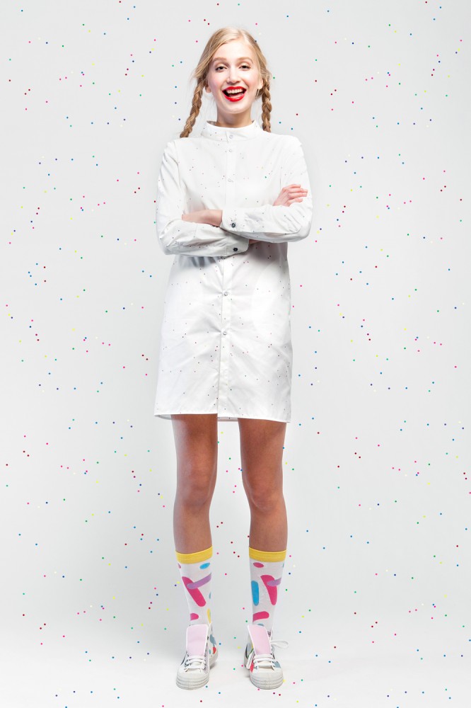 Je tu kolekcia nová, bonbónová, zaručene jej nik neodolá… Podmaní si vaše zmysly – je to veľká paráda! Bodky, čiarky, lentilky, v krásnych šatách roztrúsené omrvinky farebné. Poďte s nami, nech sa páči, ochutnajte, koľko vám len hrdlo ráči!