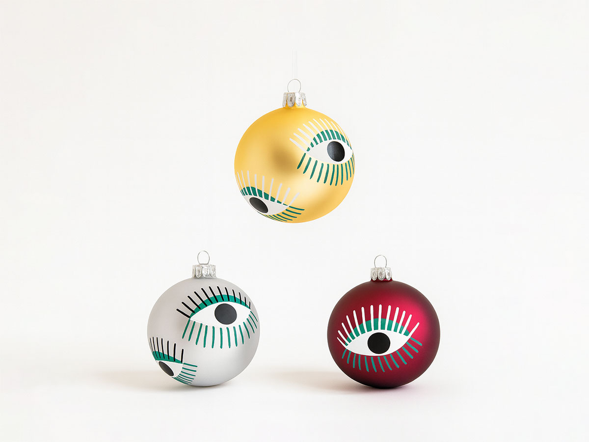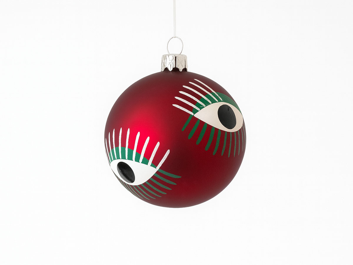 Vianočné gule so vzorom očí z kolekcie /si:/ v troch farebných variáciách sú vyrábané na Slovensku 100% ručnou výrobou. Gule sú vyrobené v limitovanej edícii pre Vianoce 2025. Priemer gule je 8 cm
