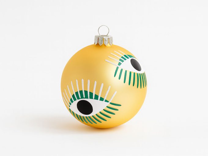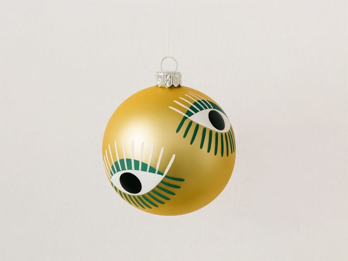 Vianočné gule so vzorom očí z kolekcie /si:/ v troch farebných variáciách sú vyrábané na Slovensku 100% ručnou výrobou. Gule sú vyrobené v limitovanej edícii pre Vianoce 2025. Priemer gule je 8 cm