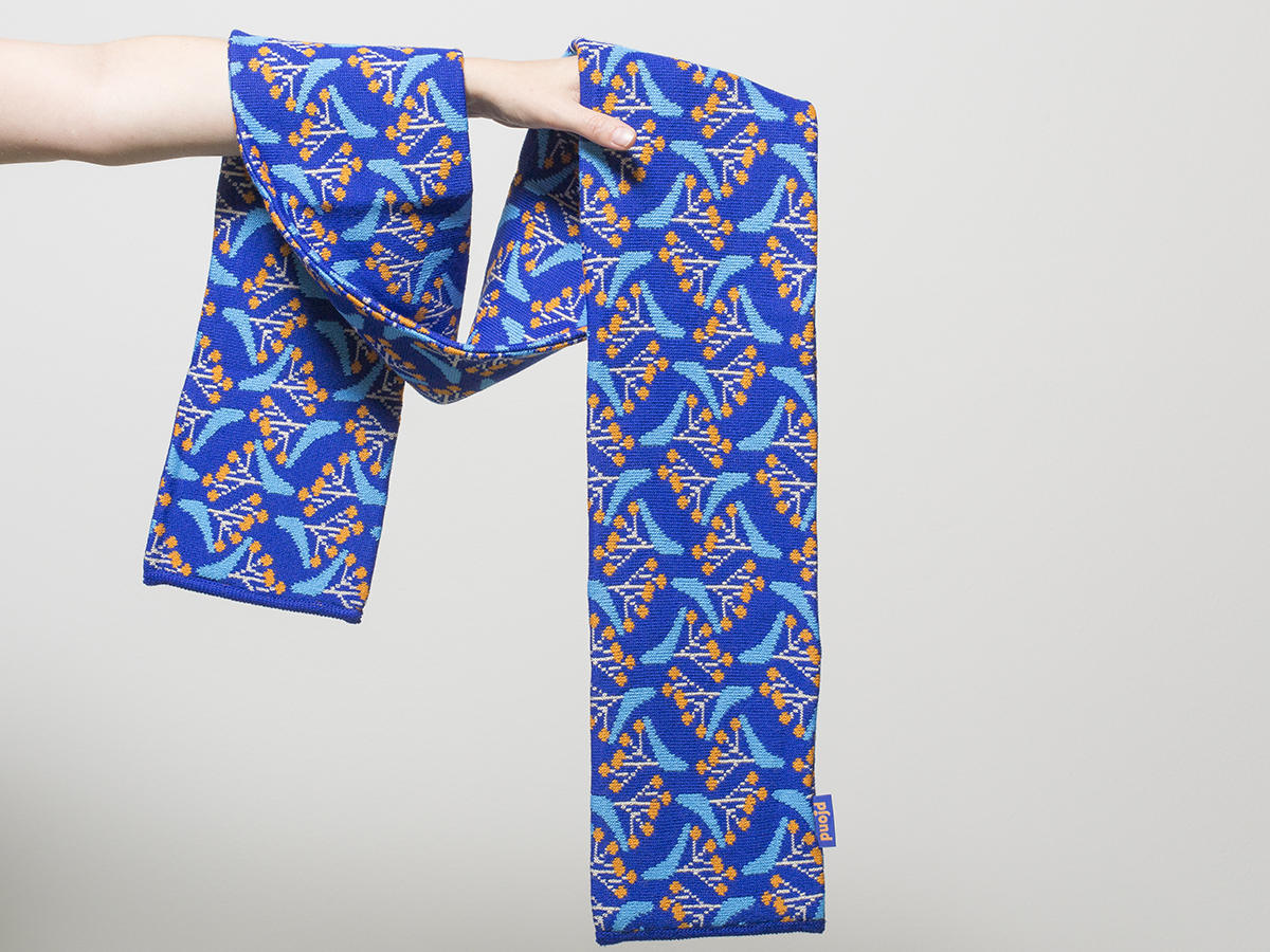 Veselý farebný šál s motívom líp jemne pripomína naše detské časy, vôňu chalupy, chuť cencúľov a radosť zo sánkovačky.