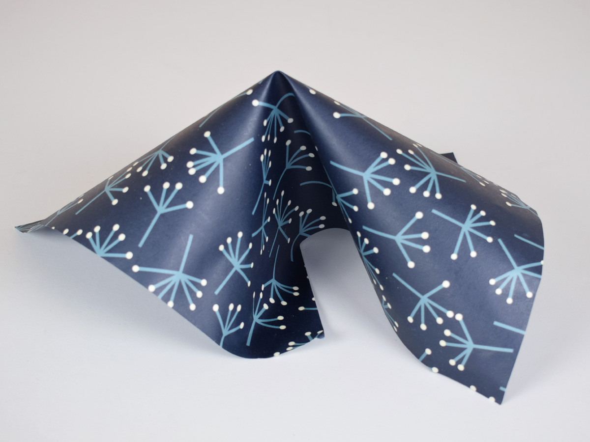 Obal so vzorom Púpavy vyrábame v dvoch veľkostiach. Tento menší má rozmer 30×30 cm a je vhodný na skladovanie menších potravín.